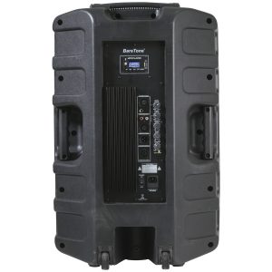A massive sound from a compact and versatile unit. A huge 300 watt amplifier provides plenty of power to move the 15 inch woofer and large horn speaker. It includes two wireless microphones for MC / Karaoke. To keep the music pumping, connect your favourite music streaming source via Bluetooth®, or via a SD / USB. Playback controls and information are provided on the speaker. A line and external speaker output is provided for expansion also. Bass and treble controls accompany the master volume for fine tuning of your sound too. Everything is enclosed into a single heavy duty enclosure, with roller wheels on the back-side to assist with transport.